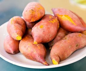 吃這種優秀的食物會讓你的美麗更上一層樓,由於它所含的大量的β胡蘿蔔素(讓地瓜帶上橘色的健康抗氧化劑)。β胡蘿蔔素已被發現可以幫助身體裏的每個細胞保持健康,而且很巧,它還是針對皮膚的營養物。研究表明,它可以緩解皺紋和曬斑、曬傷,並幫助長出新的、健康的皮膚細胞。地瓜也含有大量有益人體的纖維素和帶來活力的維他命B。整個拿去烤或是伴著點牛奶搗成泥都可以。